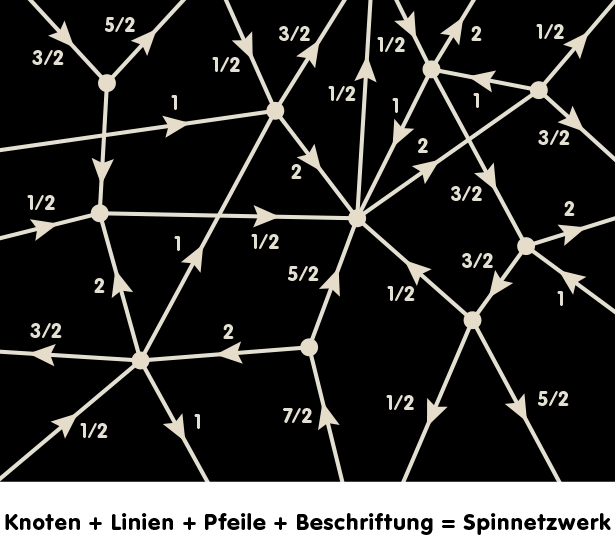 Mit dem Konzept der Schleifenquantengravitation wird der Raum als dynamisches Netzwerk beschrieben, das durch Diagramme aus Linien und Knoten anschaulich darstellbar ist.